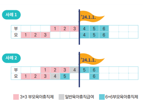 2) 이미 3+3 육아휴직제도로 육아휴직 급여를 받았을 경우에는 6+6 육아휴직 적용이 되나요?