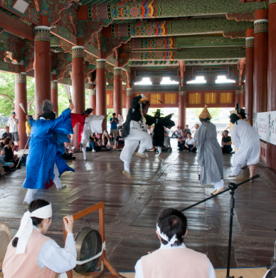 - 내용 : 탈을 쓰고 노는 탈꾼의 춤과 노래, 대사 그리고 음악이 어우러지는 종합공연예술인 '통영오광대'와 벚꽃이 하나되는 전통문화공연