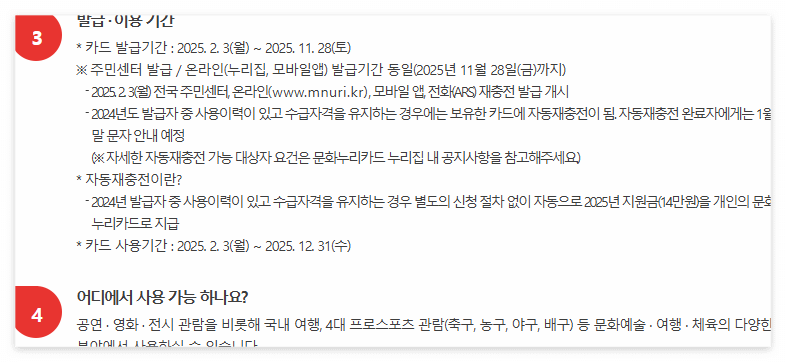 ✅ 2025년 발급된 문화누리카드는 12월 31일까지 사용 가능