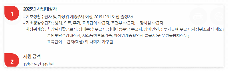 2025년에는 지원 금액이 연 14만 원으로 인상되었으며, 총 264만 명이 혜택을 받을 수 있습니다.